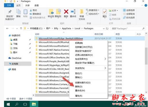 找到并删除 Microsoft.MicrosoftEdge_8wekyb3d8bbwe 文件夹。