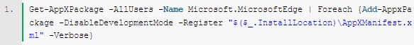 删除完成后,在 PowerShell 中执行如下命令重装微软 Edge 浏览器: