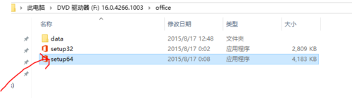 2、打开【此电脑】,我们可以看到多了一个盘,此时我们打开这个盘,打开office文件夹,在打开的文件中,双击setup64.exe文件,开始office的安装