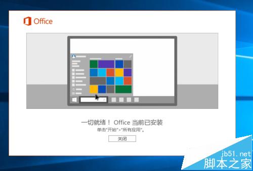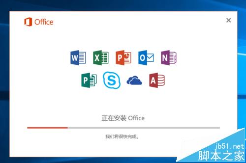 3、等待,在弹出如下窗口时,证明我们的office软件已经安装成功