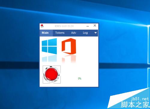 8、点击如下图所示的红色圆形按钮,开始win10和office的激活,等待程序的运行完毕,将会自动关闭,这时我们的win10已经激活了(office2016也已经激活了)。