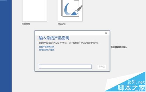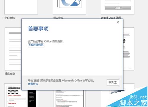 9、打开office的某个应用,这时他会提示我们输入你的产品密钥,直接关闭这个窗口,在接下来的弹出窗口中点击【接受】,这时,我们的office就完成了激活工作。