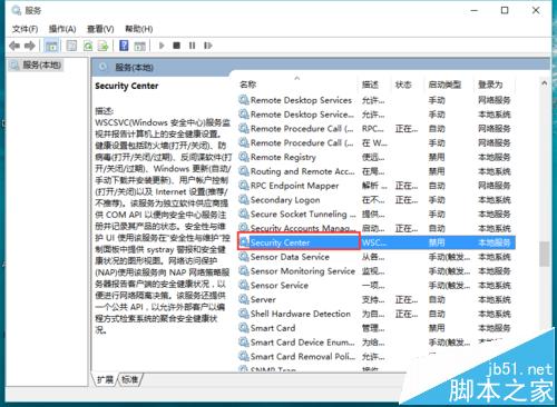 2、再打开的所有系统服务列表中,找到SecurityCenter服务项,双击它。