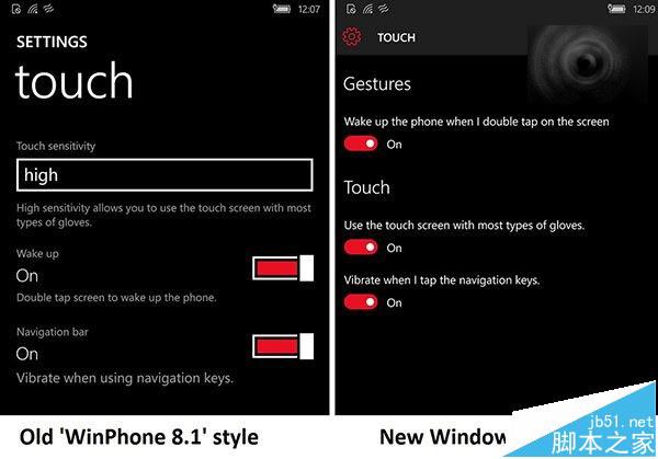 触摸设置可在系统设置—附加程序—触摸中打开。可以看到微软仍在对系统细节进行完善,为Win10 Mobile的发布做着准备。另外,微软还将对概览屏幕设置页面进行更新,目前屏幕概览设置仍为WP8.1风格。