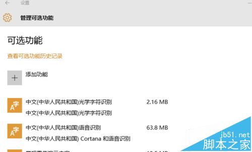 3、在打开的“管理可选功能”面板中点击【添加功能】