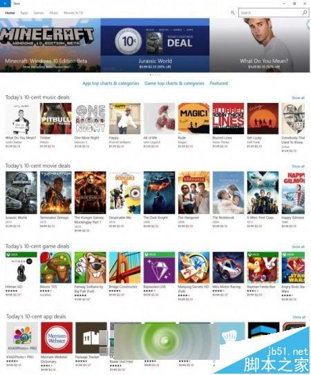像《侏罗纪世界》、《疯狂的麦克斯:狂暴之路》、《蝙蝠侠:黑暗骑士崛起》等片、贾斯汀·比伯新歌《What Do You Mean》、约翰·传奇的《All of Me》等歌曲、兼容xbox的数款Windows 10游戏等都在内。
