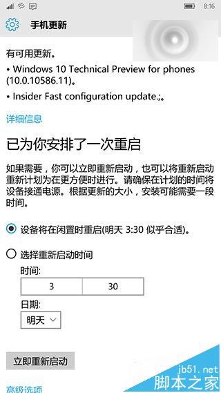 不过经外媒测试,如果你在Win10 Mobile 10581硬重置过,那么升级到10586之后,很大几率会遇到自动反复重启。因此脚本之家建议大家不要重置10581,如果已经重置的或已遇到重启循环Bug,建议大家先刷回WP8.1,再直接升级到10586.11。