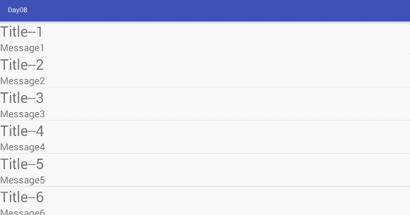 public class News { String title; String message; }import android.content.DialogInterface;import android.os.Handler;import android.os.Message;import android.support.v7.app.AlertDialog;import android.support.v7.app.AppCompatActivity;import android.os.Bundle;import android.view.View;import android.view.ViewGroup;import android.widget.AbsListView;import android.widget.AdapterView;import android.widget.BaseAdapter;import android.widget.ListView;import android.widget.TextView;import java.util.ArrayList;import java.util.List;/** * Created by panchengjia on 2016/11/29. */public class MainActivity extends AppCompatActivity implements AbsListView.OnScrollListener{private ListView lv;private List<News> news;//声明存储新闻标题与内容的Listprivate int total=1;//计数器(设置默认从1开始)用于集合内数据初始化MyAdapter adapter;@Overrideprotected void onCreate(Bundle savedInstanceState) {super.onCreate(savedInstanceState);setContentView(R.layout.activity_main);lv= (ListView) findViewById(R.id.lv);//为当前ListView设置OnScrollListener实现分页刷新lv.setOnScrollListener(this);//将login_item(下拉刷新效果的item)通过布局 填充器声明View v = getLayoutInflater().inflate(R.layout.login_item,null);//将login_item设置到ListView页脚lv.addFooterView(v);//实例化存储内容资源的Listnews = new ArrayList<>();//调用初始化List的方法initList();adapter = new MyAdapter();//设置单击item的事件lv.setOnItemClickListener(new AdapterView.OnItemClickListener() {@Overridepublic void onItemClick(AdapterView<?> parent, View view, int position, long id) {show(view);//事件处理为调用show方法(显示AlertDialog对话框)}});lv.setAdapter(adapter);}//AlertDialog对话框的调用这里就不多说了,前期有专门的博文解释public void show(View v){AlertDialog.Builder builder = new AlertDialog.Builder(this);TextView title = (TextView) v.findViewById(R.id.textView);TextView message = (TextView) v.findViewById(R.id.textView2);builder.setTitle(title.getText().toString());builder.setMessage(message.getText().toString());builder.setPositiveButton("已经浏览完毕", new DialogInterface.OnClickListener() {@Overridepublic void onClick(DialogInterface dialog, int which) {}});builder.show();}//初始化List内的元素,模拟每次可刷新10条信息private void initList() {for(int i=1;i<=10;i++){News n = new News();//加total是因为total在刷新页面后不会继续从一开始n.title = "Title--"+total;n.message="Message"+total;news.add(n);total++;}}//int currenVisibleItemCount;//声明截止当前页面看到的item总数(演示用)boolean isLastRow=false;//判断是否到ListView的最后一个item@Overridepublic void onScroll(AbsListView view, int firstVisibleItem, int visibleItemCount, int totalItemCount) {//firstVisibleItem位可见页面的第一条在Arraylist中的下标,visibleItemCount为当前页面item数//currenVisibleItemCount = firstVisibleItem+visibleItemCount-1=totalItemCount;(演示用)if(firstVisibleItem+visibleItemCount==totalItemCount&&totalItemCount>0){isLastRow=true;//判断已经到最后一个item(即为footerView)}}@Overridepublic void onScrollStateChanged(AbsListView view, int scrollState) {/*判断是否刷新页面之前,解释一下scrollState的三种状态* 1.scrollState = SCROLL_STATE_TOUCH_SCROLL为手指按住屏幕滚动(未脱离屏幕);* 2.scrollState = SCROLL_STATE_FLING可以理解为手指离开屏幕前,用力滑了一下,*手指离开后,页面已然保持滚动;* 3.scrollState = SCROLL_STATE_IDLE手指未接触屏幕,且屏幕页面保持静止* 开启刷新页面的线程前,确保ListView已经到最后一行(Item)并且屏幕页面保持静止* */if(isLastRow&&scrollState==SCROLL_STATE_IDLE){new Thread(new MyThread()).start();}}//创建分页刷新线程(模拟刷新)class MyThread implements Runnable{@Overridepublic void run() {try {Thread.sleep(500);//设置线程休眠时间为500毫秒刷新一次} catch (InterruptedException e) {e.printStackTrace();}initList();//重新初始化List//线程内调用Handler执行页面刷新(后面会写文对handler进行详细剖析)handler.sendEmptyMessage(1);}}Handler handler = new Handler(){@Overridepublic void handleMessage(Message msg) {super.handleMessage(msg);switch (msg.what){case 1://强制调用适配器的getView来刷新每个Item的内容。adapter.notifyDataSetChanged();break;}}};//自定义适配器class MyAdapter extends BaseAdapter{@Overridepublic int getCount() {return news.size();}@Overridepublic Object getItem(int position) {return news.get(position);}@Overridepublic long getItemId(int position) {return position;}@Overridepublic View getView(int position, View convertView, ViewGroup parent) {ViewHolder vh;if(convertView==null){convertView = getLayoutInflater().inflate(R.layout.item,null);vh=new ViewHolder();vh.message = (TextView) convertView.findViewById(R.id.textView2);vh.title= (TextView) convertView.findViewById(R.id.textView);convertView.setTag(vh);}vh= (ViewHolder) convertView.getTag();vh.title.setText(news.get(position).title);vh.message.setText(news.get(position).message);return convertView;}class ViewHolder{TextView title;TextView message;}}}至此ListView的分页刷新源码已全部展示完成,个人认为实现此功能的核心为判断是否达到当前ListView中的最后一条item(包含页脚刷新提示)以及理解scrollState的状态,理解了这两点,该功能的实现起来事半功倍。