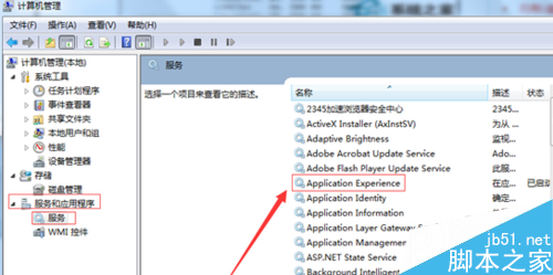 2.在弹出来的窗口中,在左侧的栏目中按顺序点击“服务和应用程序”“服务”,在右侧的栏目中找到“Application Experience”和“Program Compatibility Assistant Service”这两个选项。