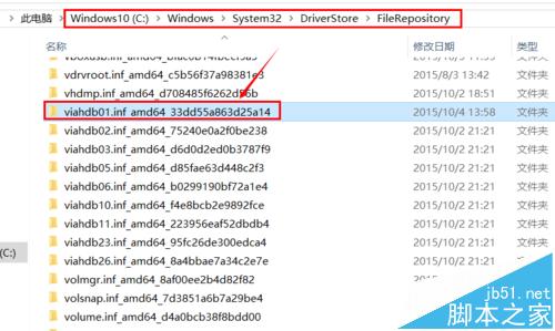 5、到系统文件中C:WindowsSystem32DriverStoreFileRepository找到该文件夹,(貌似每个人的这个文件夹名称都一样是:viahdb01.inf_amd64_33dd55a863d25a14,如果你的不是,请一上一步中的文件夹为准)。