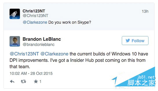 好消息是,今天Windows Insider项目高级主管Brandon LeBlanc在和网友互动时表示,微软已经找到了一个系统DPI问题的解决方案,而且已经在现有Windows 10编译版本中”测试了。