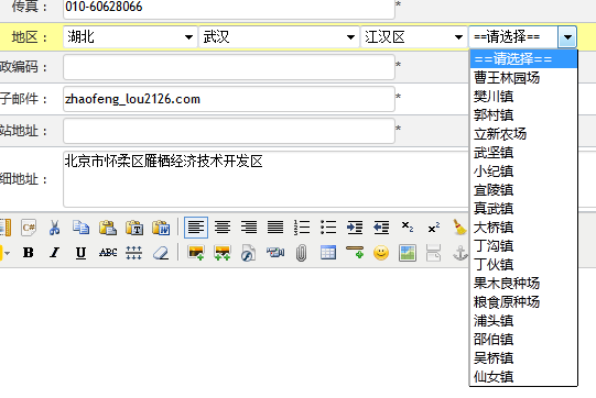 1.Jquery插件代码(function (j) {j.fn.attrs = function (option) {var root = this, data = [];//默认参数var def = { url: "/ajax/GetSort/", str: root.attr("str") || "0", handel: function (v) {return "<option value=" + v.id + ">" + v.type + "</option>"}, path: root.attr("val") || 0, sChar: ",", change: function (v) { }};//参数合并def = j.extend({}, def, option);//是否初始化ispath() ? init() : create(def.str);//请求分类并选中function create(id, o, v) {if (!id || parseInt(id) == -1)return o.nextAll().remove();//创建selectvar select = j("<select></select>").hide();_b(select);//添加到容器内if (o) o.nextAll().remove();root.append(select);//发起Ajax请求j.ajax({type: "GET",url: def.url,data: { id: id },dataType: "json",cache: true,success: function (json) {datainit(select, json, v);}})}function datainit(select, data, v) {_c(select, data).val(v || -1);if (select.children("option").length <= 1) {select.remove();return;}elseselect.removeAttr("style");}//判断是否符合格式function ispath() {return def.path && /^(d{1,},)*d{1,}$/.test(def.path) && def.path != "0,0,0";}//创建值function _v() {var v = new Array(), vtext = new Array();v.push(0);root.children("select").each(function () {if (j(this).val() > 0) {v.push(j(this).val());vtext.push(j(this).children("option[selected]").text())}})root.attr("val", v.join(","));root.attr("vtext", vtext.join(">"));def.change(v);}//初始化function init() {if (ispath()) {var list = def.path.split(def.sChar);for (var i in list) {create(list[i], null, list[++i]);}return;}alert("Error:分类出错!")}//绑定事件function _b(select) {select.bind("change", function () {create(j(this).val(), j(this));_v();})}//创建下拉框function _c(select, data) {select.append(j("<option value="-1">==请选择==</option>"));for (var i = 0; i < data.length; i++) {select.append(j(def.handel(data[i])));}return select;}}})($)2.对付省市选择
