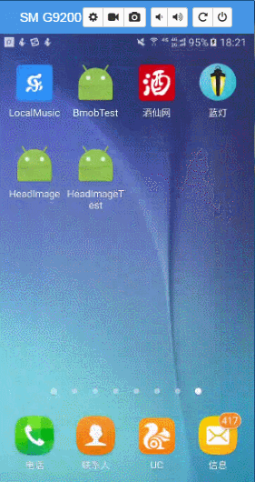 import android.content.Intent;import android.graphics.Bitmap;import android.net.Uri;import android.os.Bundle;import android.os.Environment;import android.provider.MediaStore;import android.support.v7.app.AppCompatActivity;import android.view.View;import android.widget.Button;import android.widget.ImageView;import android.widget.Toast;import java.io.File;public class MainActivity extends AppCompatActivity implements View.OnClickListener {private Button buttonLocal, buttonCamera;private ImageView imageView;//相机拍摄的头像文件(本次演示存放在SD卡根目录下)private static final File USER_ICON = new File(Environment.getExternalStorageDirectory(), "user_icon.jpg");//请求识别码(分别为本地相册、相机、图片裁剪)private static final int CODE_PHOTO_REQUEST = 1;private static final int CODE_CAMERA_REQUEST = 2;private static final int CODE_PHOTO_CLIP = 3;@Overrideprotected void onCreate(Bundle savedInstanceState) {super.onCreate(savedInstanceState);setContentView(R.layout.activity_main);buttonLocal = (Button) findViewById(R.id.buttonLocal);buttonCamera = (Button) findViewById(R.id.buttonCamera);imageView = (ImageView) findViewById(R.id.imageView);buttonLocal.setOnClickListener(this);buttonCamera.setOnClickListener(this);}//设置点击事件@Overridepublic void onClick(View view) {switch (view.getId()) {case R.id.buttonLocal://调用获取本地图片的方法getPicFromLocal();break;case R.id.buttonCamera://调用相机拍照的方法getPicFromCamera();break;default:break;}}/** * 从本机相册获取图片 */private void getPicFromLocal() {Intent intent = new Intent();// 获取本地相册方法一intent.setAction(Intent.ACTION_GET_CONTENT);intent.setType("image/*");//获取本地相册方法二//intent.setAction(Intent.ACTION_PICK);//intent.setDataAndType(MediaStore.Images.Media.EXTERNAL_CONTENT_URI,//"image/*");startActivityForResult(intent, CODE_PHOTO_REQUEST);}/** * 通过相机拍摄获取图片, * 并存入设置的路径中 */private void getPicFromCamera() {Intent intent = new Intent();intent.setAction(MediaStore.ACTION_IMAGE_CAPTURE);// 下面这句指定调用相机拍照后的照片存储的路径intent.putExtra(MediaStore.EXTRA_OUTPUT, Uri.fromFile(USER_ICON));startActivityForResult(intent, CODE_CAMERA_REQUEST);}/** * 图片裁剪 * * @param uri */private void photoClip(Uri uri) {// 调用系统中自带的图片剪裁Intent intent = new Intent();intent.setAction("com.android.camera.action.CROP");intent.setDataAndType(uri, "image/*");// 下面这个crop=true是设置在开启的Intent中设置显示的VIEW可裁剪intent.putExtra("crop", "true");// aspectX aspectY 是宽高的比例intent.putExtra("aspectX", 1);intent.putExtra("aspectY", 1);/*outputX outputY 是裁剪图片宽高 *这里仅仅是头像展示,不建议将值设置过高 * 否则超过binder机制的缓存大小的1M限制 * 报TransactionTooLargeException */intent.putExtra("outputX", 150);intent.putExtra("outputY", 150);intent.putExtra("return-data", true);startActivityForResult(intent, CODE_PHOTO_CLIP);}/** * 提取保存裁剪之后的图片数据,并设置头像部分的View */private void setImageToHeadView(Intent intent) {Bundle extras = intent.getExtras();if (extras != null) {Bitmap photo = extras.getParcelable("data");imageView.setImageBitmap(photo);}}@Overrideprotected void onActivityResult(int requestCode, int resultCode, Intent data) {// 用户没有进行有效的设置操作,返回if (resultCode == RESULT_CANCELED) {Toast.makeText(MainActivity.this, "取消", Toast.LENGTH_LONG).show();return;}switch (requestCode) {case CODE_CAMERA_REQUEST:if (USER_ICON.exists()) {photoClip(Uri.fromFile(USER_ICON));}break;case CODE_PHOTO_REQUEST:if (data != null) {photoClip(data.getData());}break;case CODE_PHOTO_CLIP:if (data != null) {setImageToHeadView(data);}break;}super.onActivityResult(requestCode, resultCode, data);}}这里要注意的是在裁剪图片时,长和宽不要设置太大,否则超过binder机制的缓存大小的限制(受手机配置影响).报TransactionTooLargeException,在代码中已经做了详细标注,请各位看官在实现的时候万万注意。