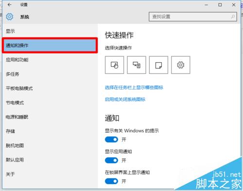 3、找到通知和操作