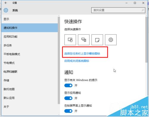 4、接着点击----选择在任务栏上显示哪些图标