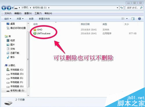 7.现在打开我们的U盘可以看到里面有两个文件,这两个文件我们可以删除也可以不删除,小编建议不要删除!因为有这个文件对以后我们安装系统有好处,对于高手来说不用考虑!