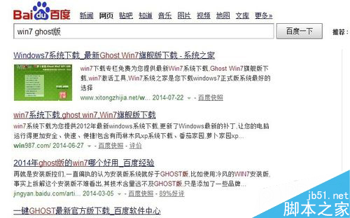 8.现在我们可以在网上下载WIN7系统安装盘,我们可以百度搜索“win7 ghost版”网上很多我们找个地方把win7系统下载回来!当然如果你有win7 ghost安装盘就更方便了,我们可以把安装盘直接复制到电脑上!