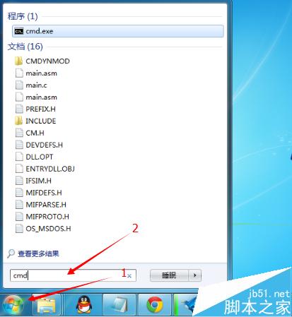 首先,点击开始菜单,其次,在(搜索程序和文件)输入cmd
