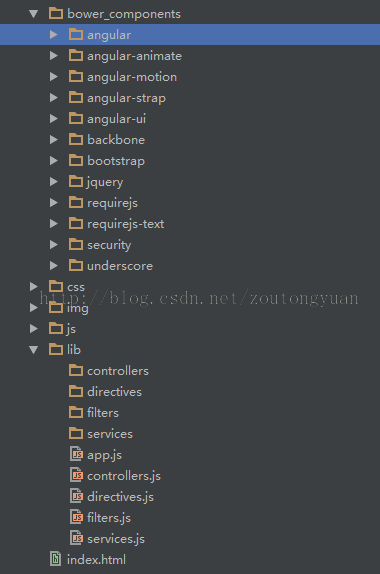 bower_components 下的库、框架 , 是使用bower 安装的 。bower install 库 --save