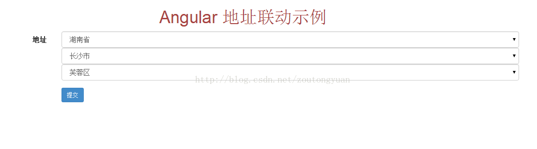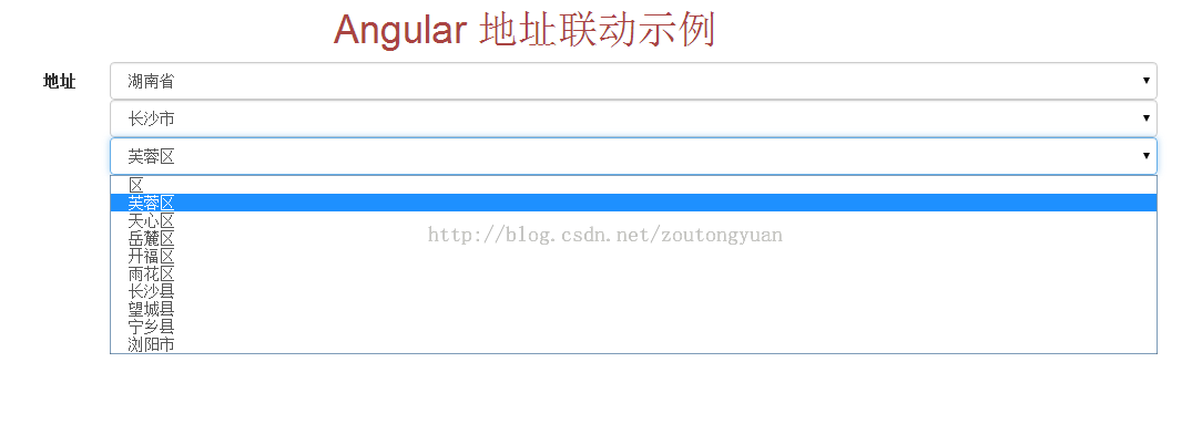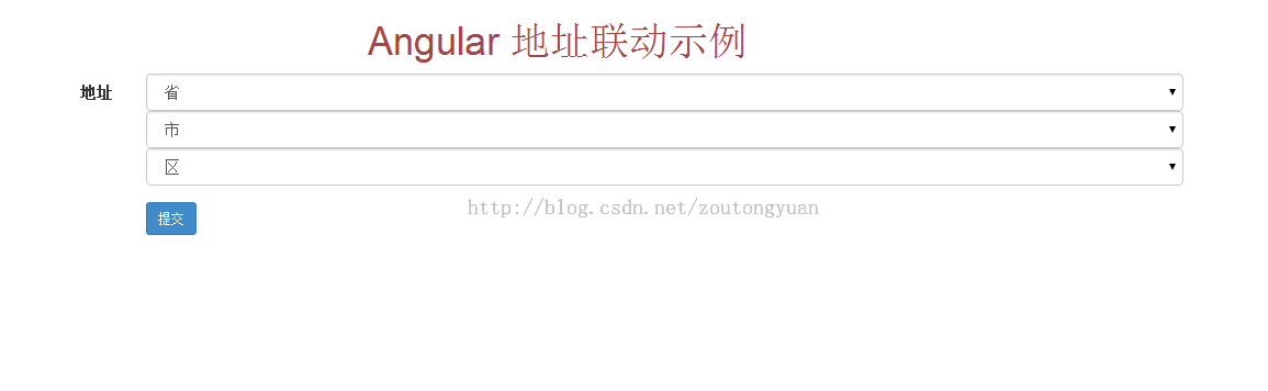 来实现 省市区联动,来体验一下 AngularJs 双向绑定 不是盖的。