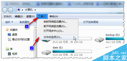 第一步:打开”我的电脑“,之后点击”工具“--文件夹选项。