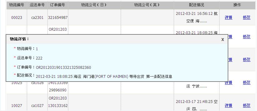 function viewLogistics(event,logisticNO){ var os = getOs(); var y = getY(event); if(os=="MSIE"){ y=window.event.y+405; } $(".logisticscenter_xq").hide(); $("#"+logisticNO).show(); $("#"+logisticNO).css("top",y+15); } 至于方法中event参数的作用,还不是太清楚,这点需要再调查一下。最终效果如下图,随着鼠标下移,层能够动态的移动。