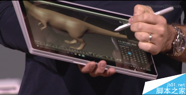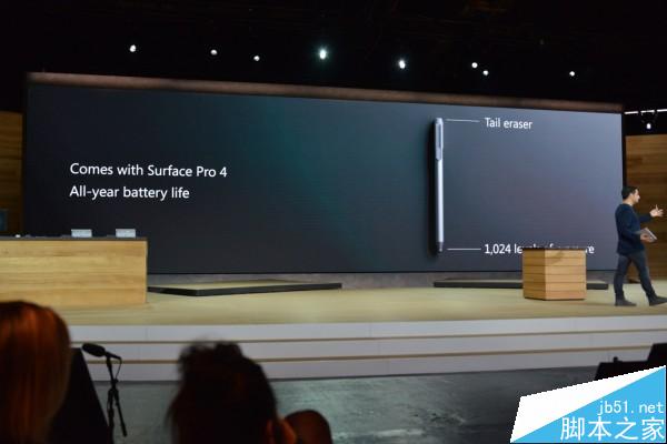 配备全新的Surface Pen,完美配合1024级压感屏,自带橡皮擦。(讽刺了下苹果自称Pencil却没有橡皮擦)。遗憾的是并不支持充电,电池可用1年。