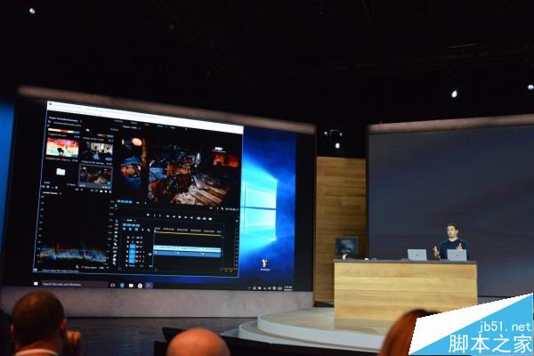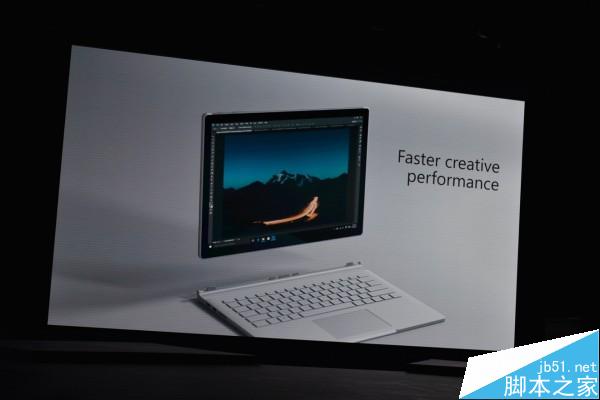 Surface Book的定位是与MacBook Pro竞争,现场还展示了Adobe Premier Pro的运行效果。