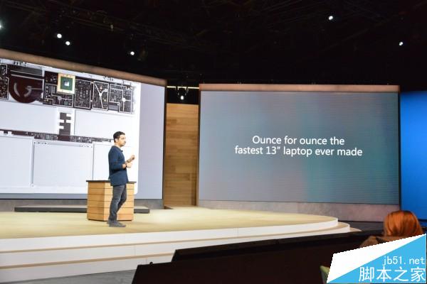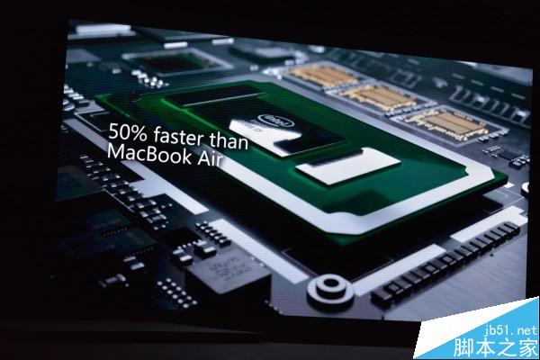 Surface Pro 4比Surface Pro 3的速度快30%,远远超越MacBook Air性能达50%,并且表示iPad Pro并不是同一级别的产品,无法拿来比较。