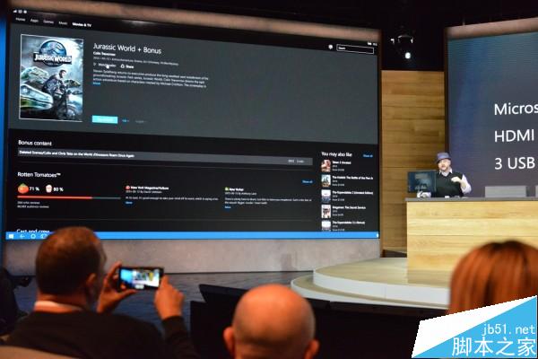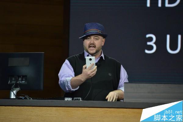Continuum演示时间,Lumia 950兼容微软各种外接配件,新的显示基座支持HDMI和DisplayPort输出,还可以提供3个USB接口。手机端运行了Beta版本的Windows Hello,同桌面版相同,用户能够通过声波来进行解锁。