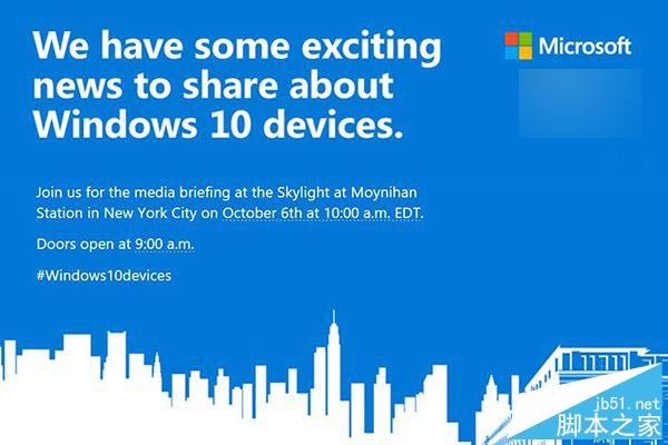 微软纽约Windows10发布会网址查看:https://www.microsoft.com/october2015event/,届时脚本之家会为大家带来图文直播。