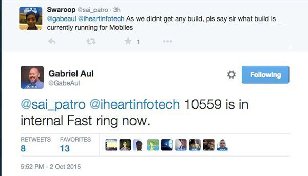 现在看来,微软果然不负众望,Windows Insider项目负责人Gabriel Aul表示,微软目前正在Win10 Mobile预览版10559,已经进入快速通道。如果在内测期间没有出现明显的Bug,微软应该会在10月6号的发布会之后向Insider会员们推送该版本。