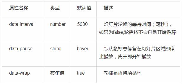 <div id="slidershow" class="carousel slide" data-ride="carousel"> ...</div>除了data-ride="carousel"、data-slide、data-slide-to 以外,轮播组件还支持其他三个自定义属性: