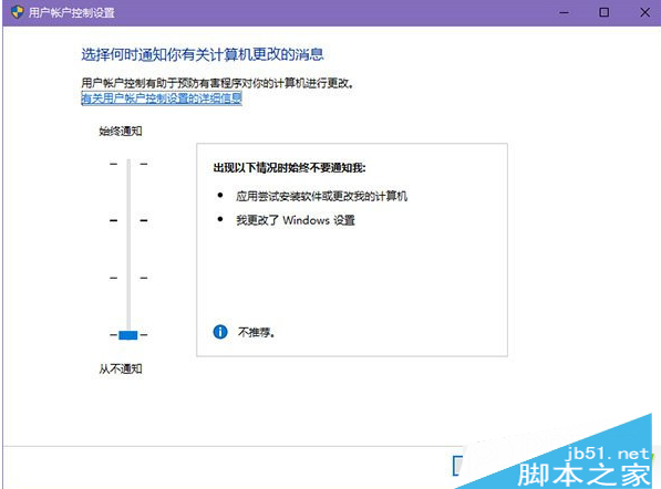 建议在问题解决后重新开启UAC,大部分软件都可以在较低权限下正常运行,开启UAC后凡是需要管理员权限的操作都需要经过用户的同意,这样可以有效抵制恶意软件在未经用户同意的情况下安装多余软件或篡改系统文件。