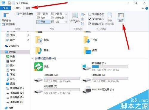 1、首先断开拨号连接。打开此电脑,点击“查看”标签,点击“选项”。