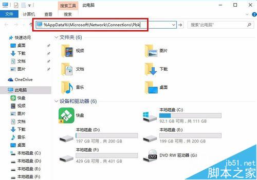 3、在此电脑地址栏中输入%AppData%MicrosoftNetworkConnectionsPbk,并回车