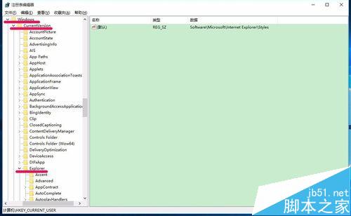 4、在Microsoft的展开项中展开:WindowsCurrentVersionExplorer;
