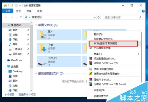 4、把文件资源管理器窗口中的常用文件和最近使用文件全部从“快速访问”取消固定。