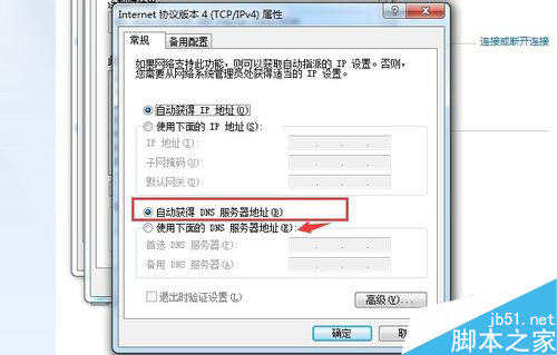 把图中所示"自动获得DNS服务器地址"前面选项的选择改到下面一项"使用下面的DNS服务器地址".