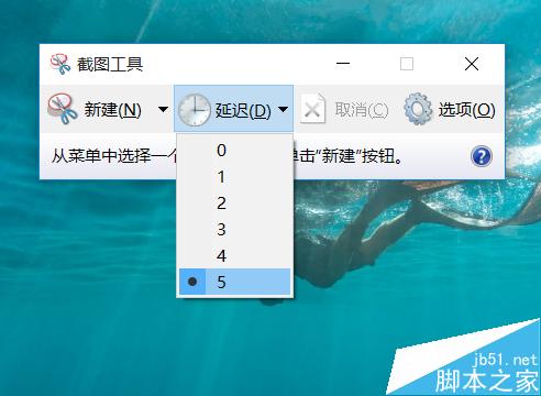 5、有的时候我们需要延时截图,可以在“延迟“上选延时时间,最多5秒,感觉有点少,不过也够用了