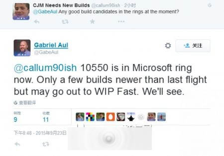 微软内部已经开始测试Build 10550,目前该版本还处于Internal Ring阶段,但Aul表示将在近期内发布至Fast Ring渠道。