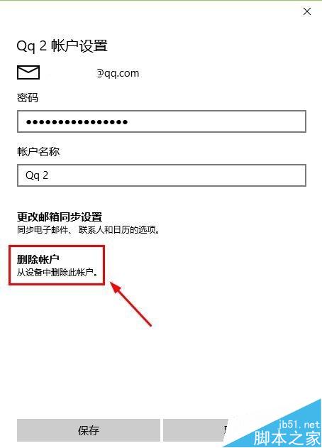 5、这时候在账户设置窗口中点击这里的删除账户按钮。