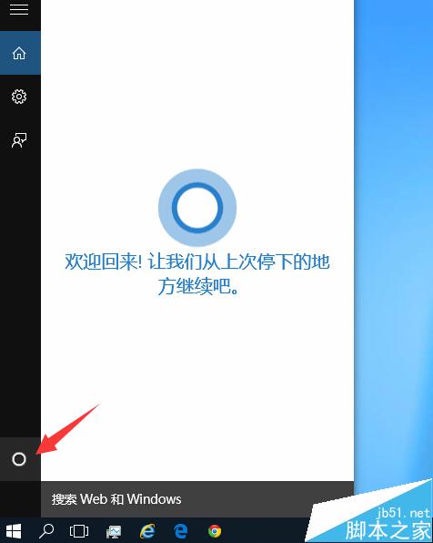 4、再点击左侧最下面的小娜标志“〇”