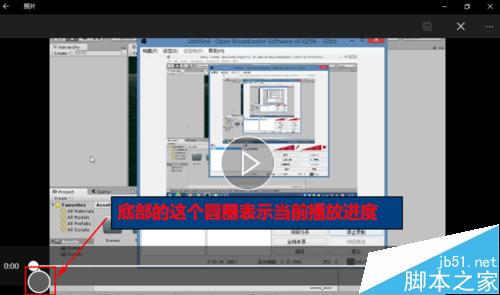4、此时,会在视频播放线上的两端出现两个端点,这是用来调整截取视频的时长的(左为开始处,右为结束处)。而在播放线的下方,会有一个圆圈,这是用来标明当前播放位置(即播放进度)的。