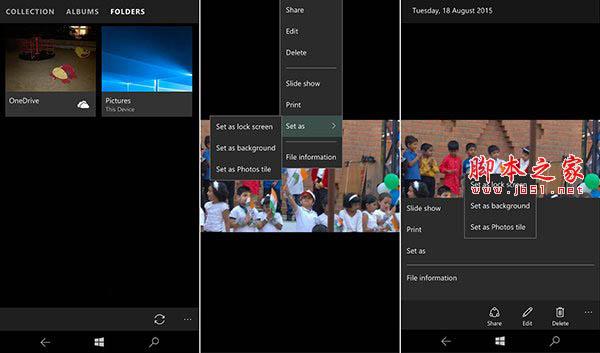 • 开始屏幕个性化设置中的变化。现在已可从“我的图片/示例图片”中选择背景图片,并且背景样式设置“磁贴背景/全屏背景”已成为独立的设置选项;
