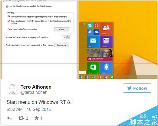 开始菜单在Windows 10上的回归,可以说是这几年微软干过的最讨人欢喜的事情之一了。不过,尽管微软承诺会将Windows 10带到尽可能多的设备上,定位有些尴尬的Windows RT设备,似乎却被边缘化处理了。