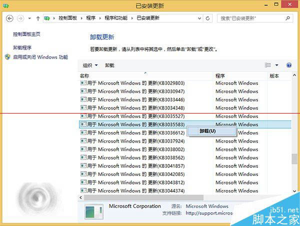 Windows 8用户的相应更新文件为:KB3035583,KB2976978