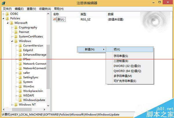 注意:若没有WindowsUpdate项,可在点击上图中Windows目录后,在右侧空白处手动点击右键新建。