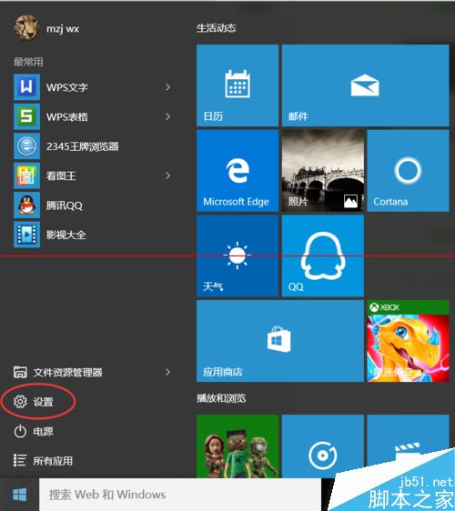 2、在【开始】菜单下,点击选择【设置】选项。(如图所示)