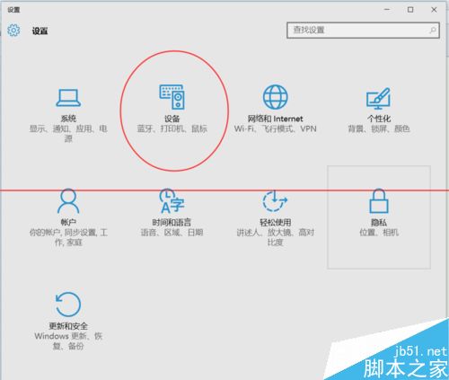 3、在【设置】界面下,点击选择【设备】选项。(如图所示)